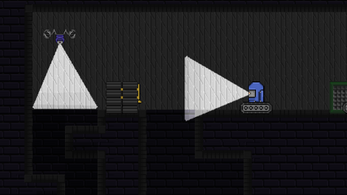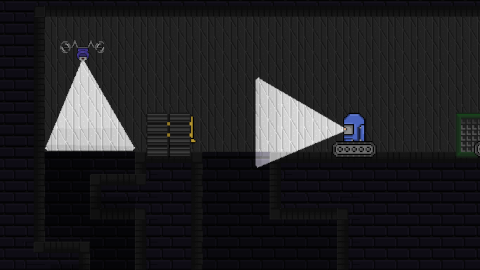 You control a box trapped inside mysterious rooms guarded by robots. Their lights scan the environment constantly, and being detected means instant defeat.